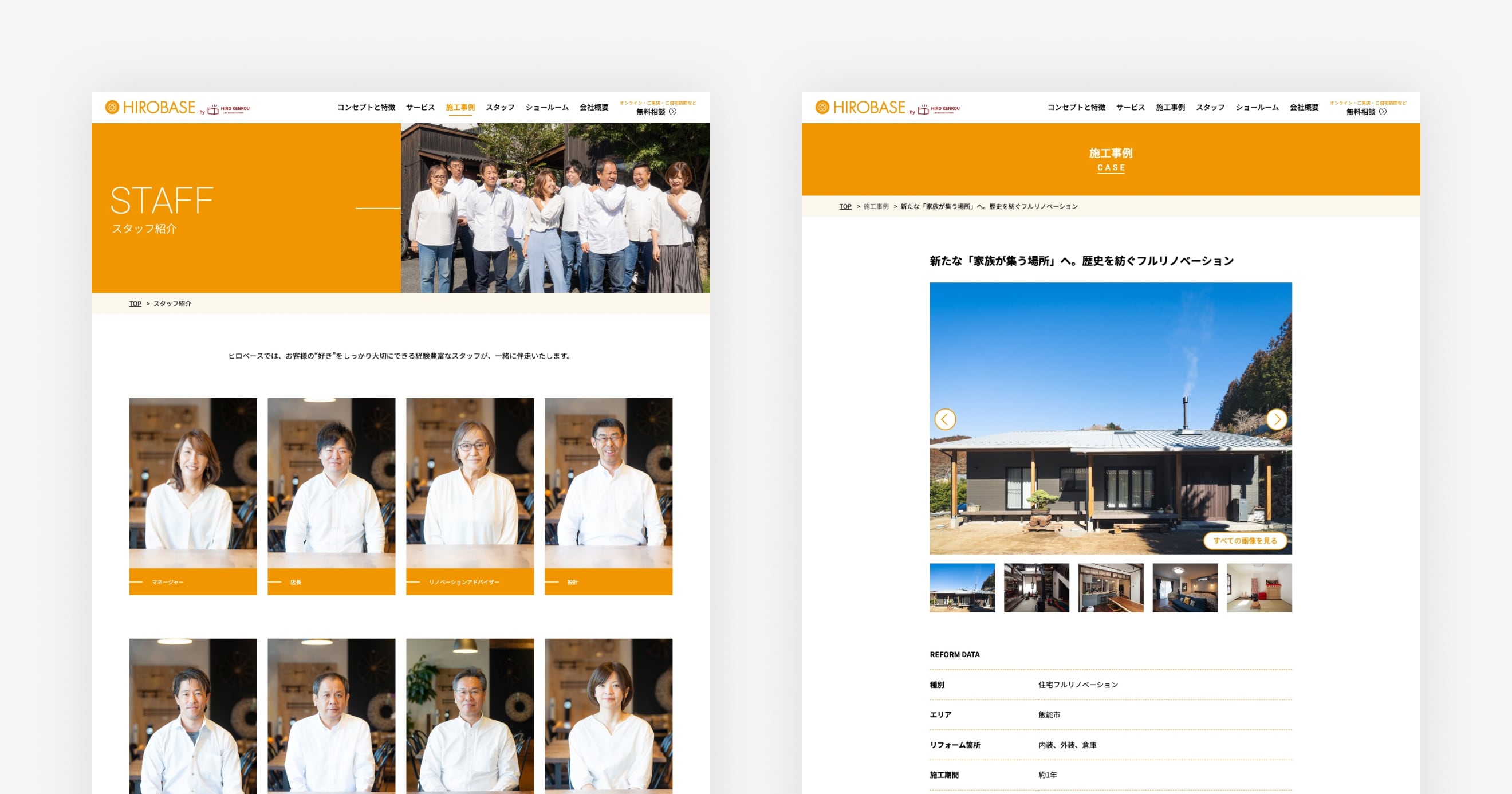 埼玉県入間市を拠点に、リフォーム・リノベーションを手がける「株式会社ヒロベース」さまのWebサイト制作で、ディレクション・撮影を担当いたしました。