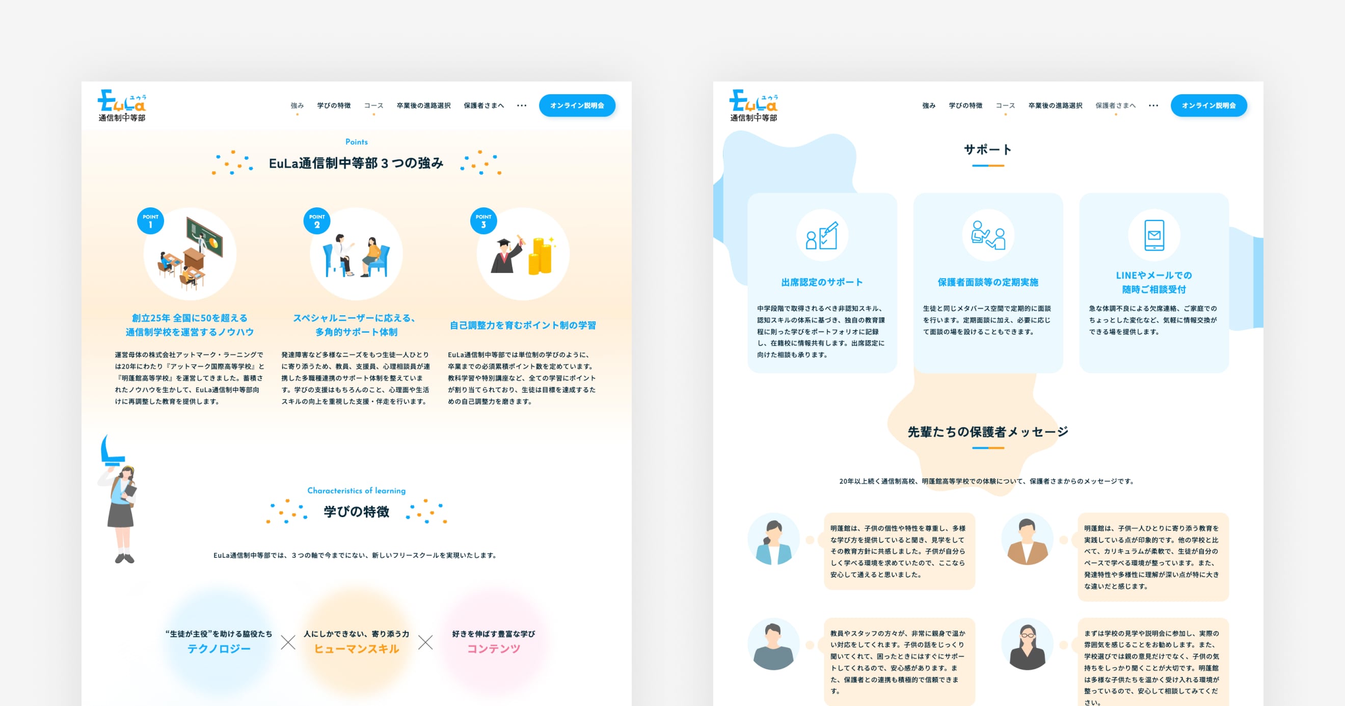 オンライン完結だからこそ、サイトでの情報提供と世界観の伝え方が重要でした。創立25年のノウハウと「EuLa」の自由な雰囲気を融合させ、不安を減らしながら興味を引く構成を心がけました。FAQや実績データの更新を続け、より多くの方に“自分らしい学び”を届けていただければ幸いです。