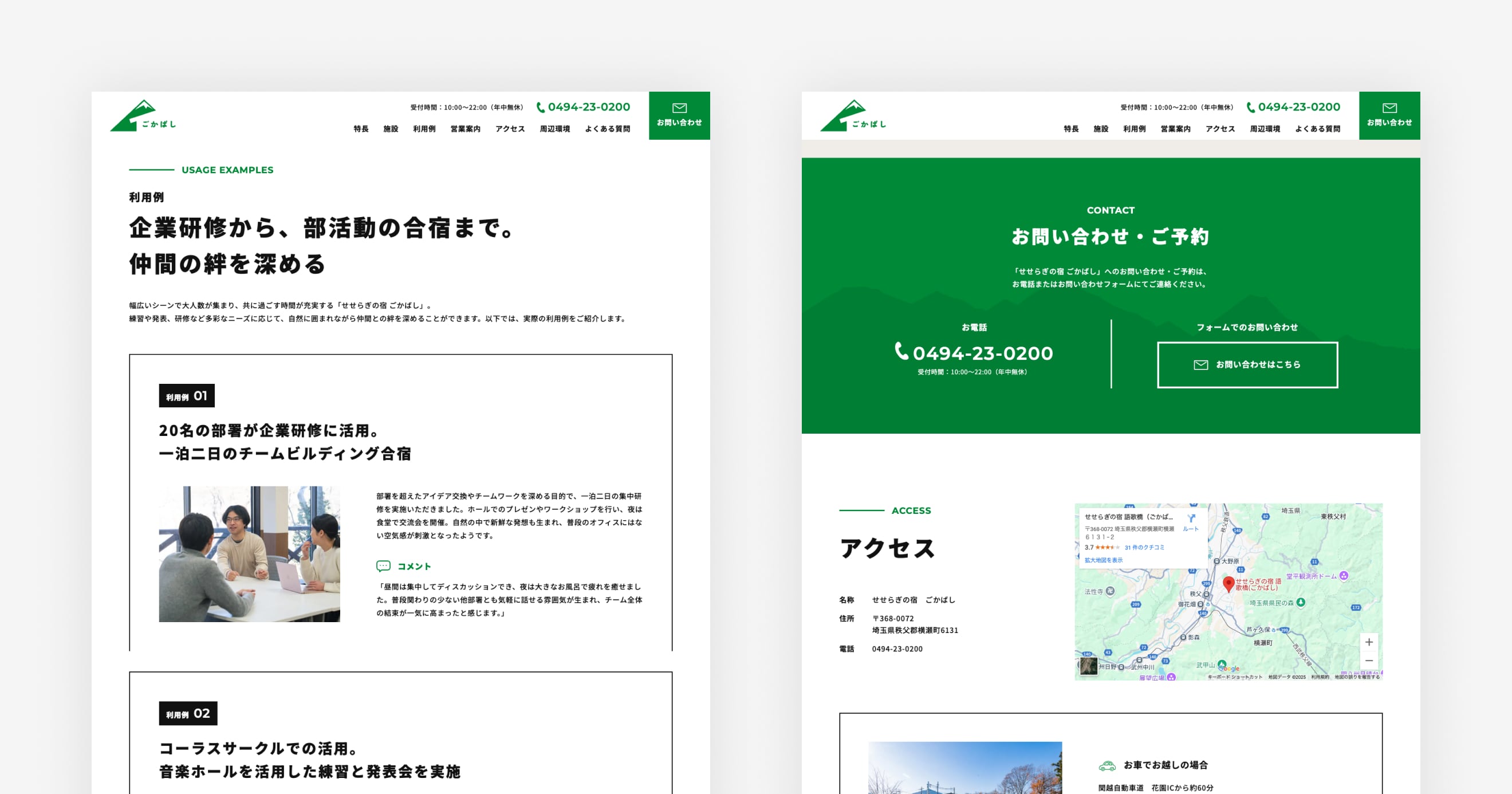 単に施設の情報を掲載するだけでなく、近隣の観光スポットや自然体験、地元グルメなどを紹介することで、地域全体を楽しめる合宿・研修先としての魅力を訴求。「宿泊するだけで終わらない」価値を感じてもらえるよう意識しました。