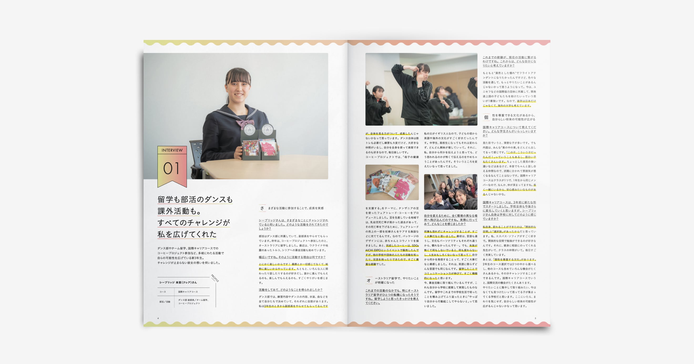 生徒と先生の対談、在校生や卒業生へのインタビュー等、2,000字程度の読み応えのある記事を作成し、本誌及び別冊のストーリーブックに掲載しました。