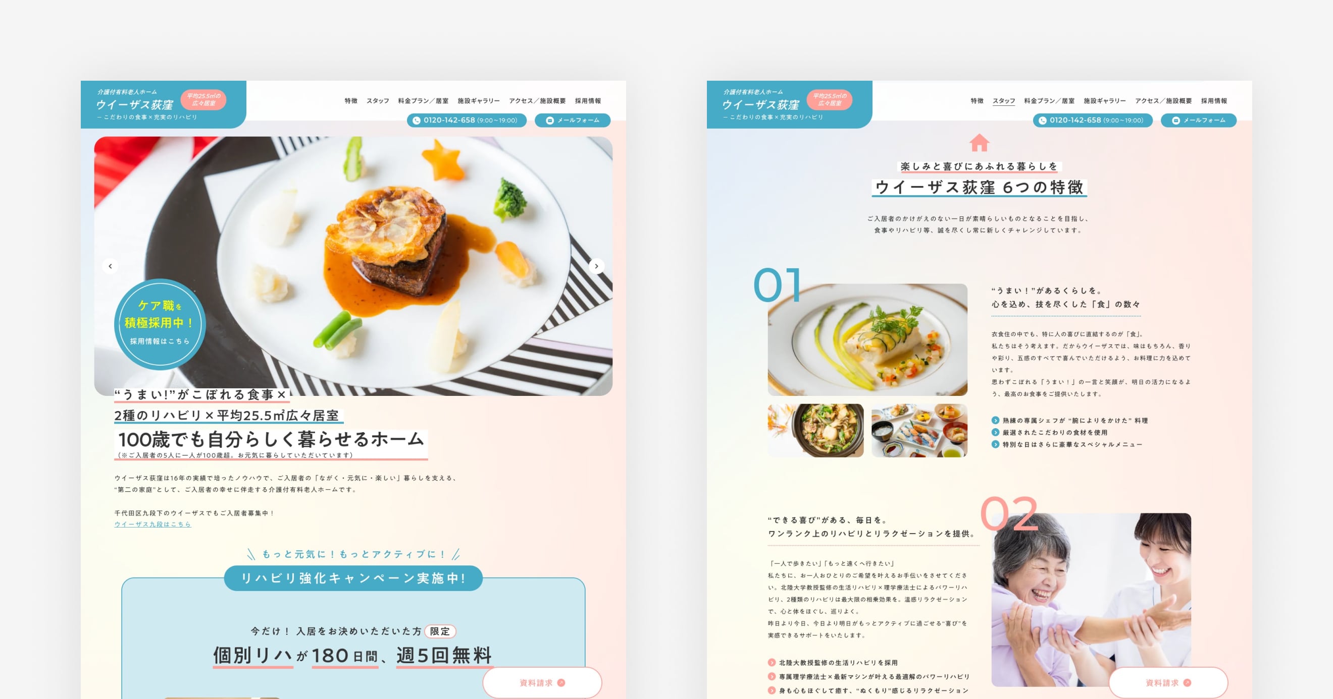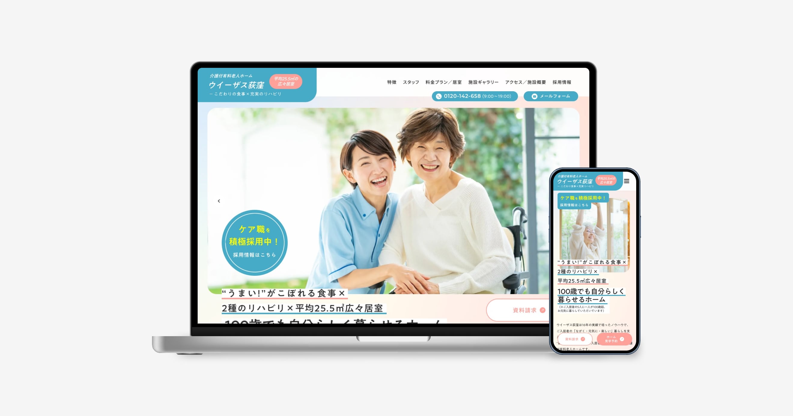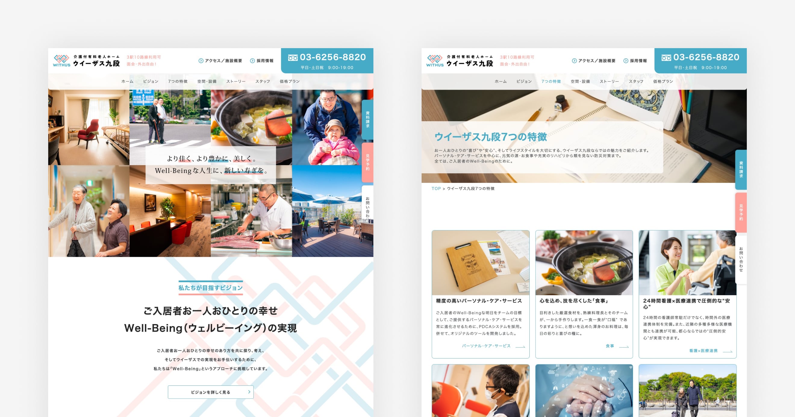 東京・九段下、東京・荻窪で老人ホーム施設を展開する株式会社ウイーザス様の各施設サイト制作にて、コンセプトメイキング・コピーライティング、制作ディレクション、撮影を担当いたしました。
