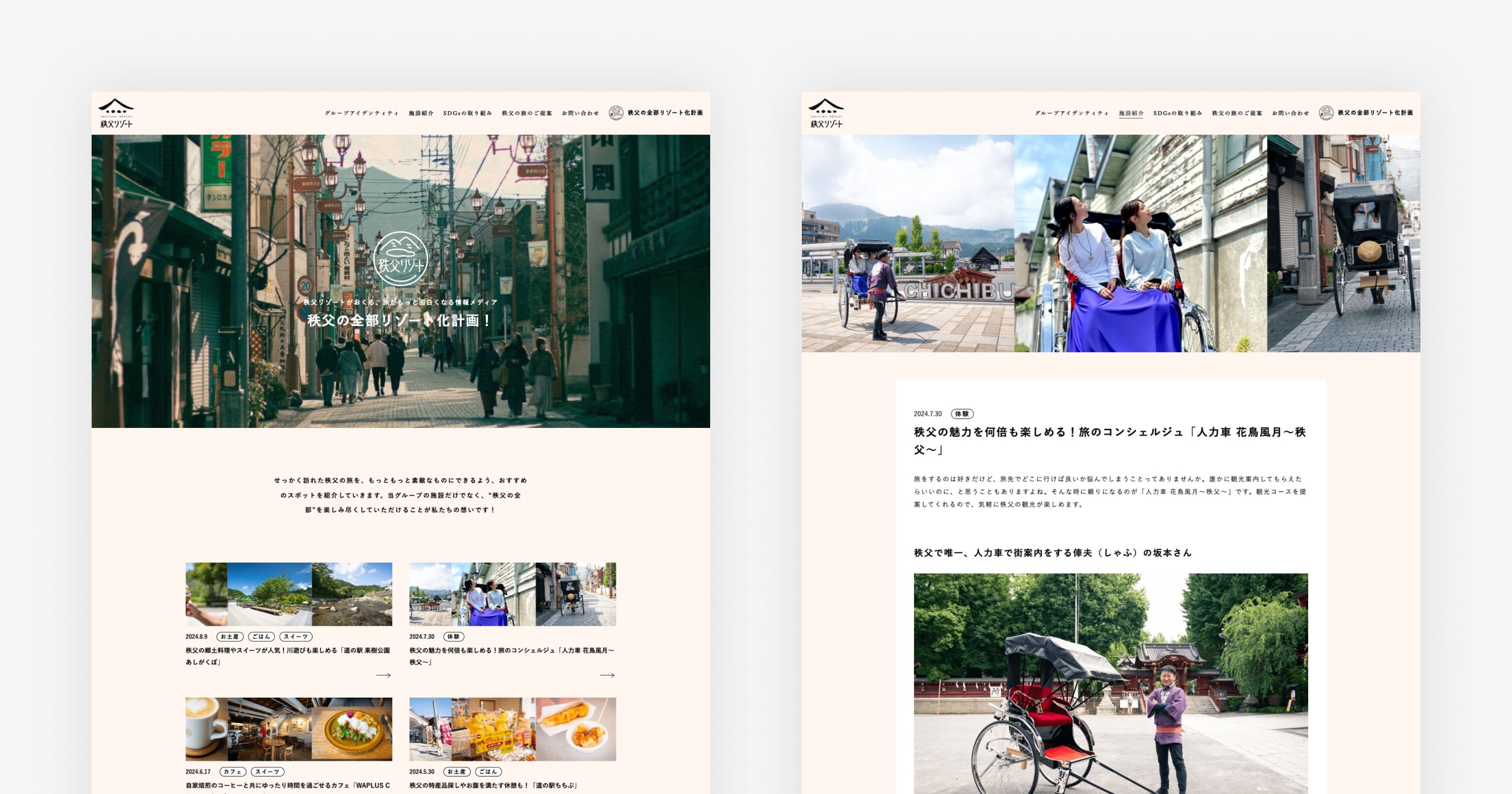また、「秩父のすべてが、最高のリゾートに。」のコンセプトを体現する企画の1つとして、秩父の観光情報を発信するオウンドメディア「秩父の全部リゾート化計画!」を立ち上げました。私を編集長として、地域のライターさんと共にスポットごとに丁寧に取材、コンテンツ化し、継続的に情報発信をしています。