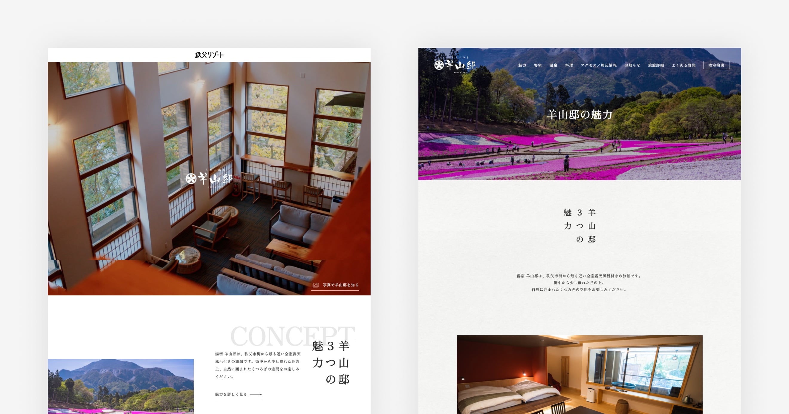 秩父市内で2023年にオープンした「湯宿 羊山邸」様のWebサイトを制作させていただきました。