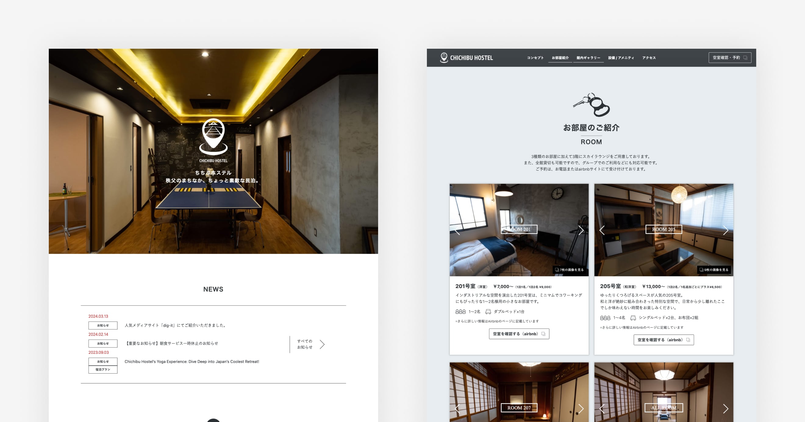 秩父市内の人気民泊施設「ちちぶホステル」様のWebサイトを制作させていただきました。