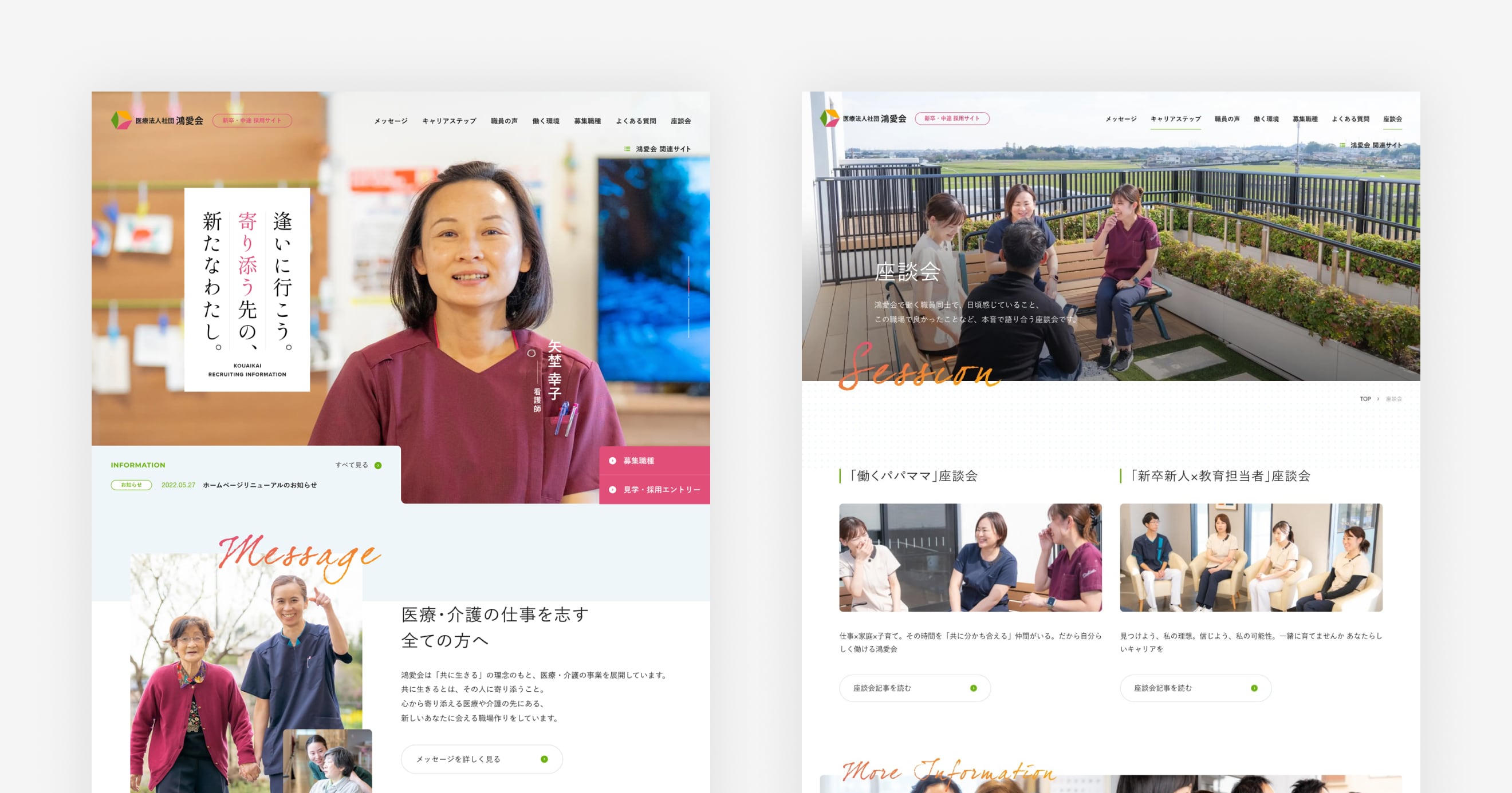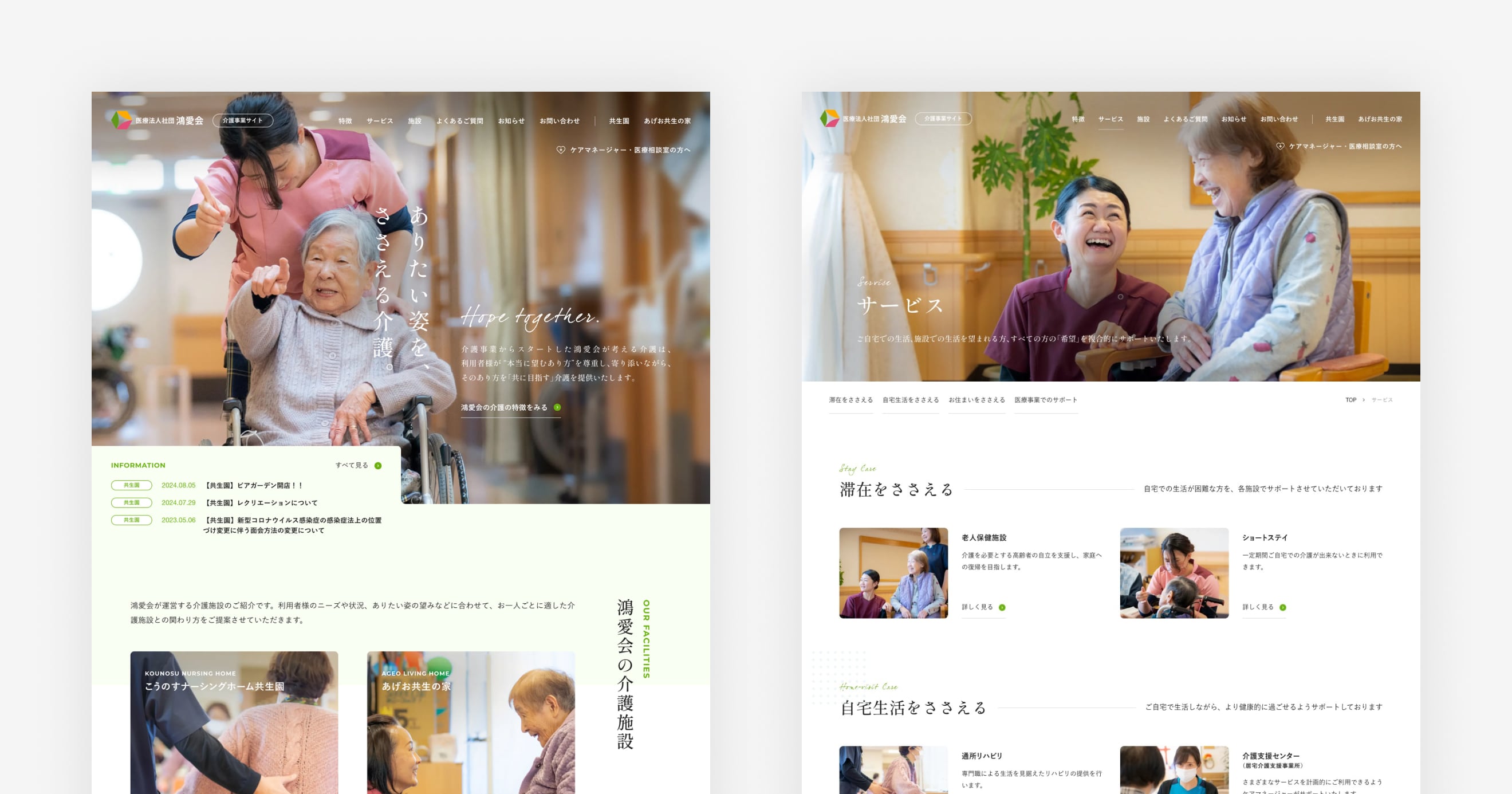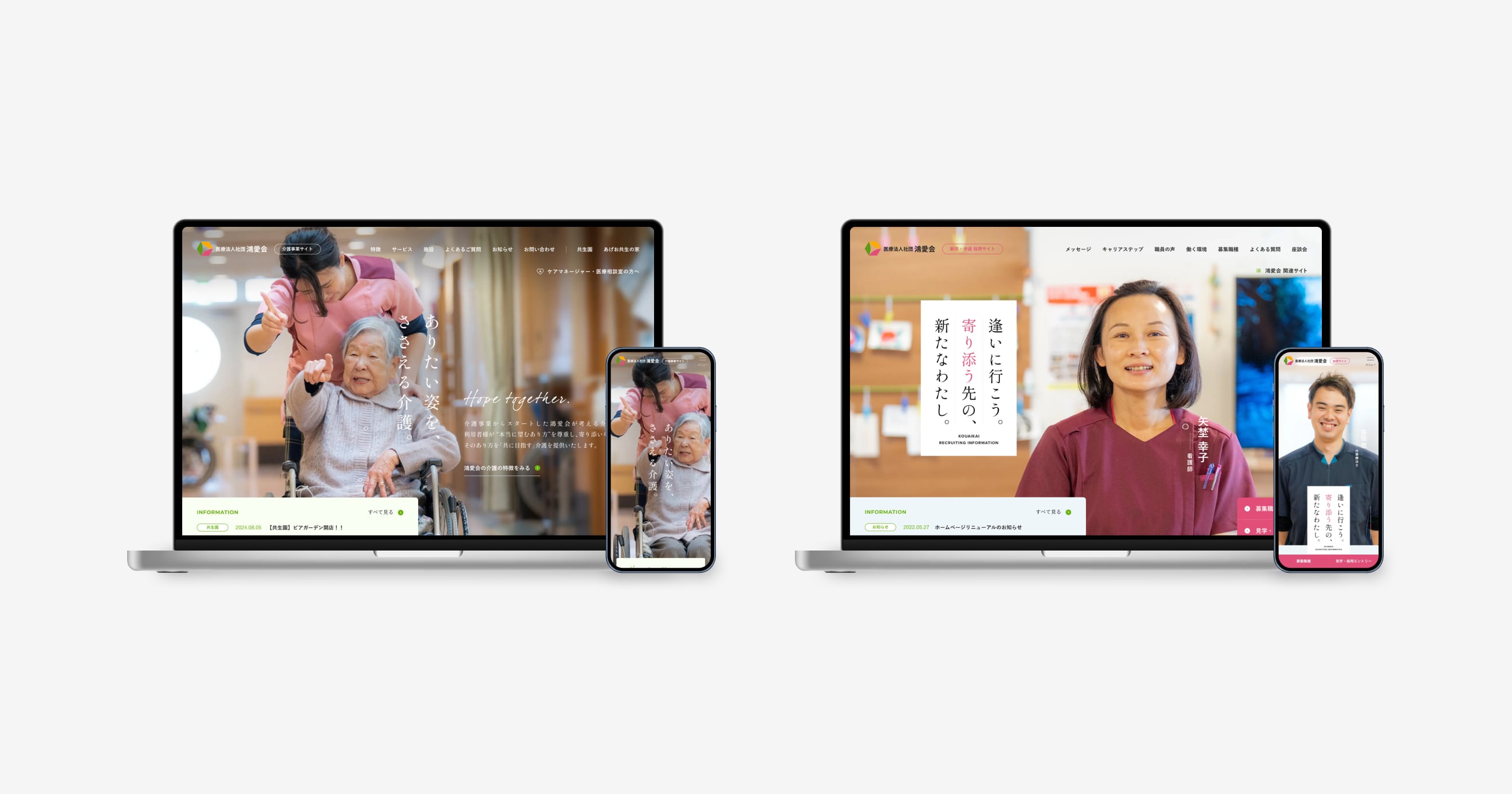 埼玉県鴻巣市を拠点として、複数の医療・介護施設を展開する「医療法人社団 鴻愛会」様の、コーポレートサイト、介護事業サイト、採用サイトの同時リニューアルを担当いたしました。