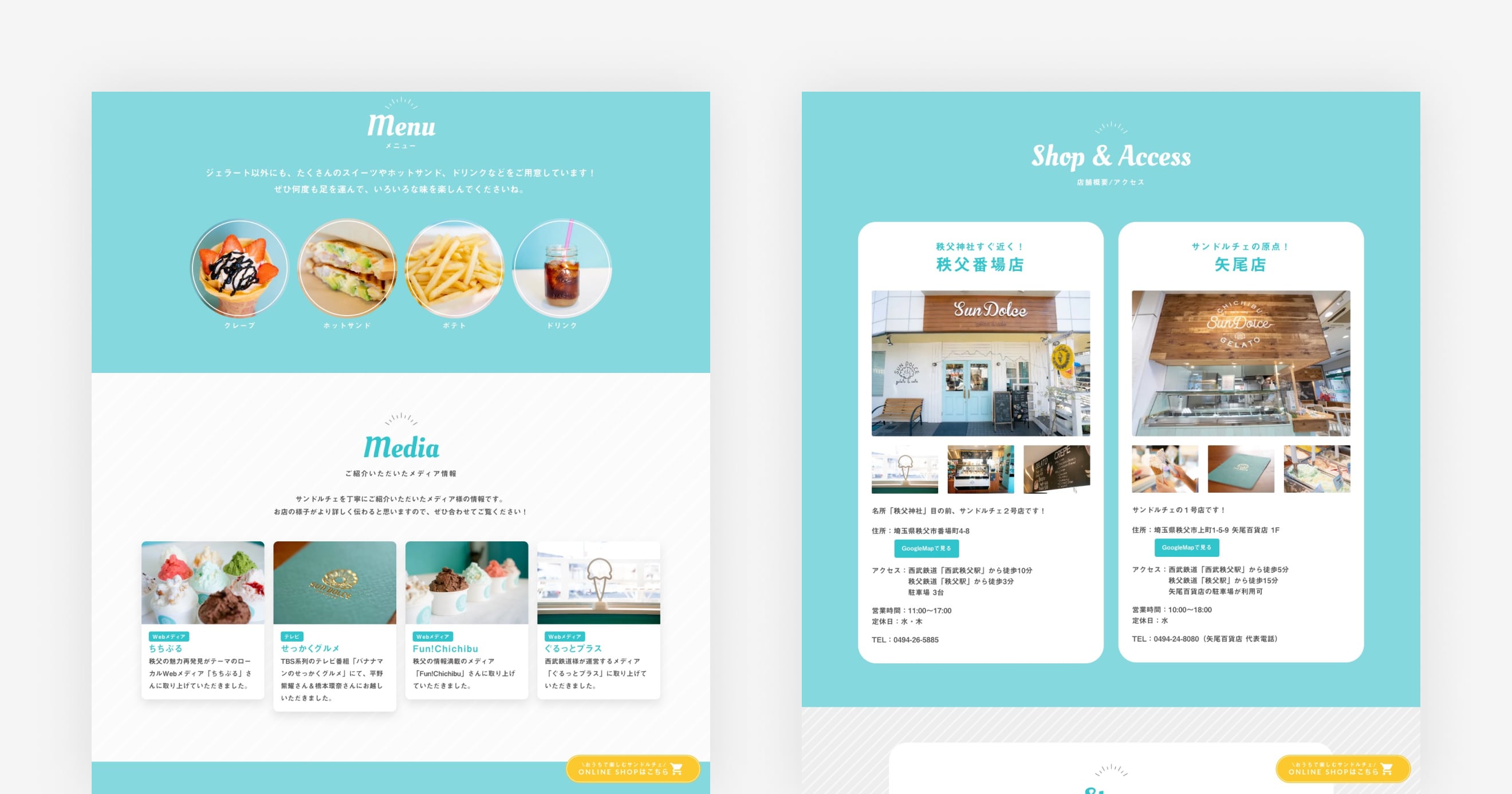 秩父市で30年続く老舗ジェラート店「サン・ドルチェ」さまの、Webサイト・ECサイトを制作させていただきました。