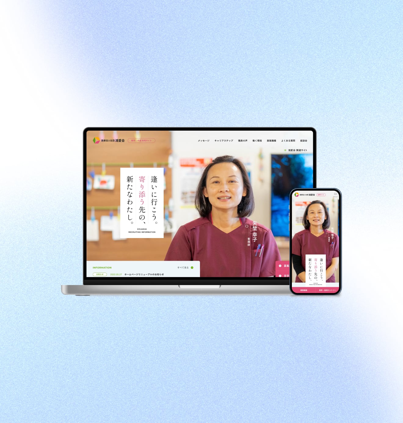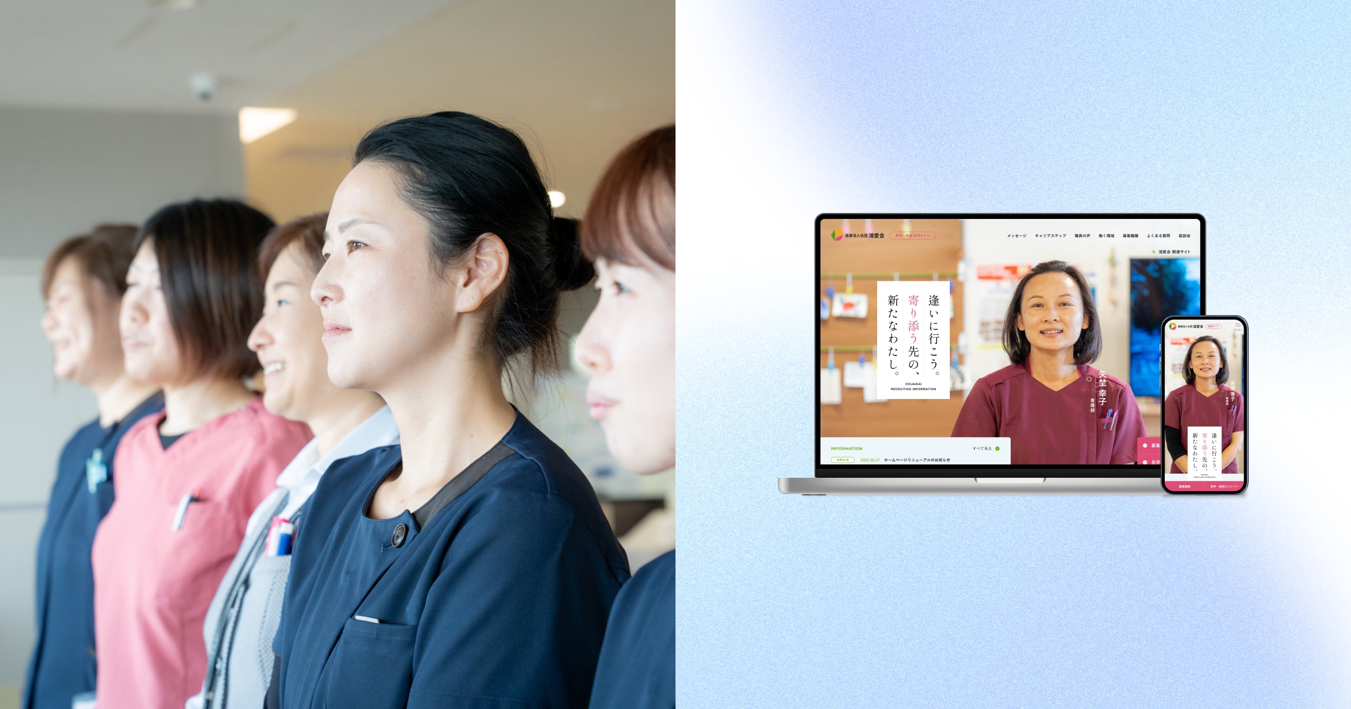 多くの制作会社の場合、その会社自体の理念があり、社員はそれに沿ってWebサイトを作り上げますよね。だから、どうしてもその会社の思いに引っ張られたWebサイトになりがちです。でも浅見さんは違いました。鴻愛会の理念に寄り添いながら、そのままの温度感でWebサイトを作り、表現してくれる印象がありました。それが他の会社とは全く違っていて。