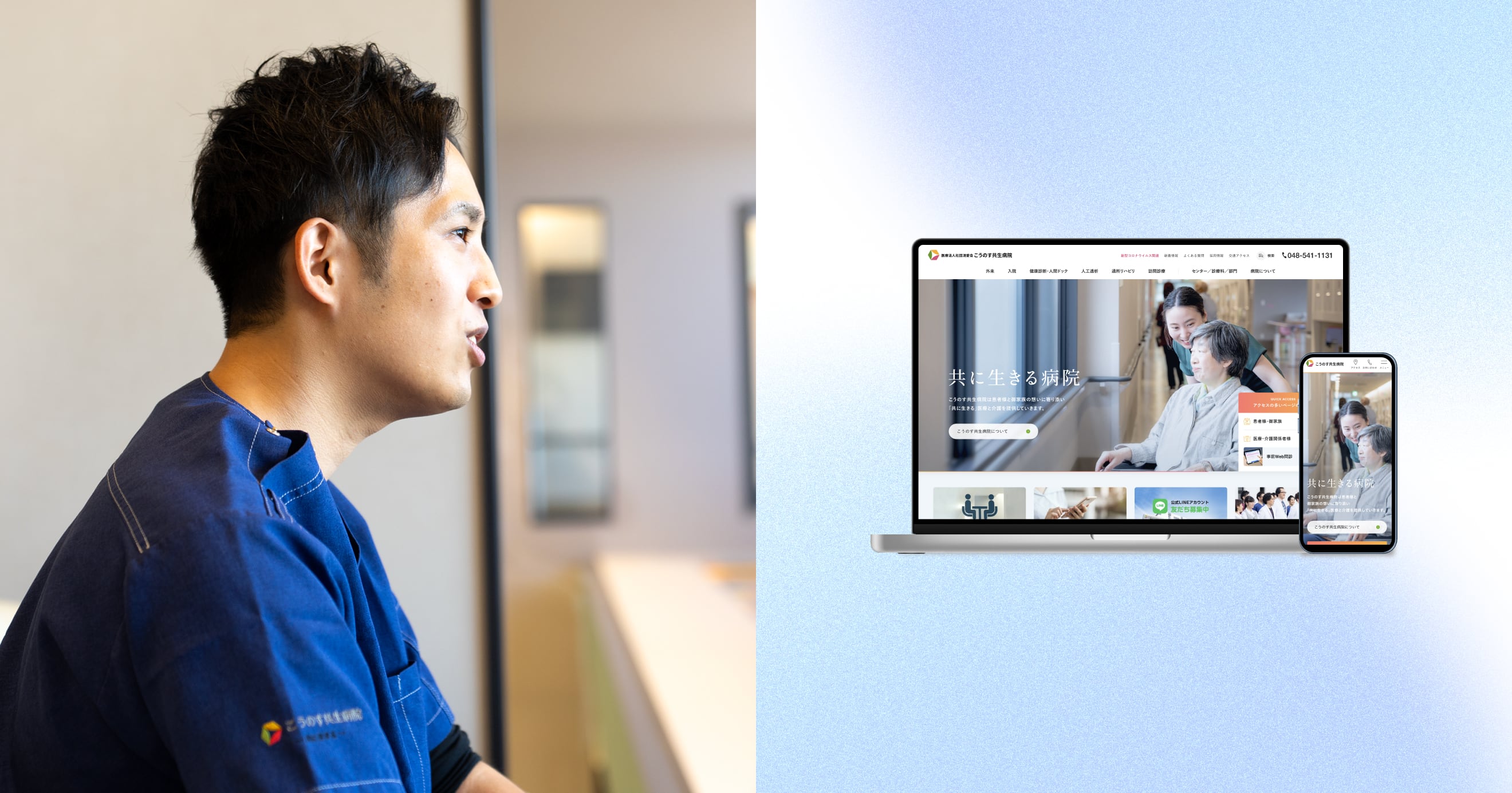 浅見: 理事長からは、ブランドを一新し、「地域に寄り添う病院」という打ち出しをしたいということ、そして基本理念である「共に生きる」というメッセージを伝えたいという意向を伺っていました。だからこそ、職員の方々や患者さんの顔が見えるようなサイトになるよう、コンテンツに反映していきました。