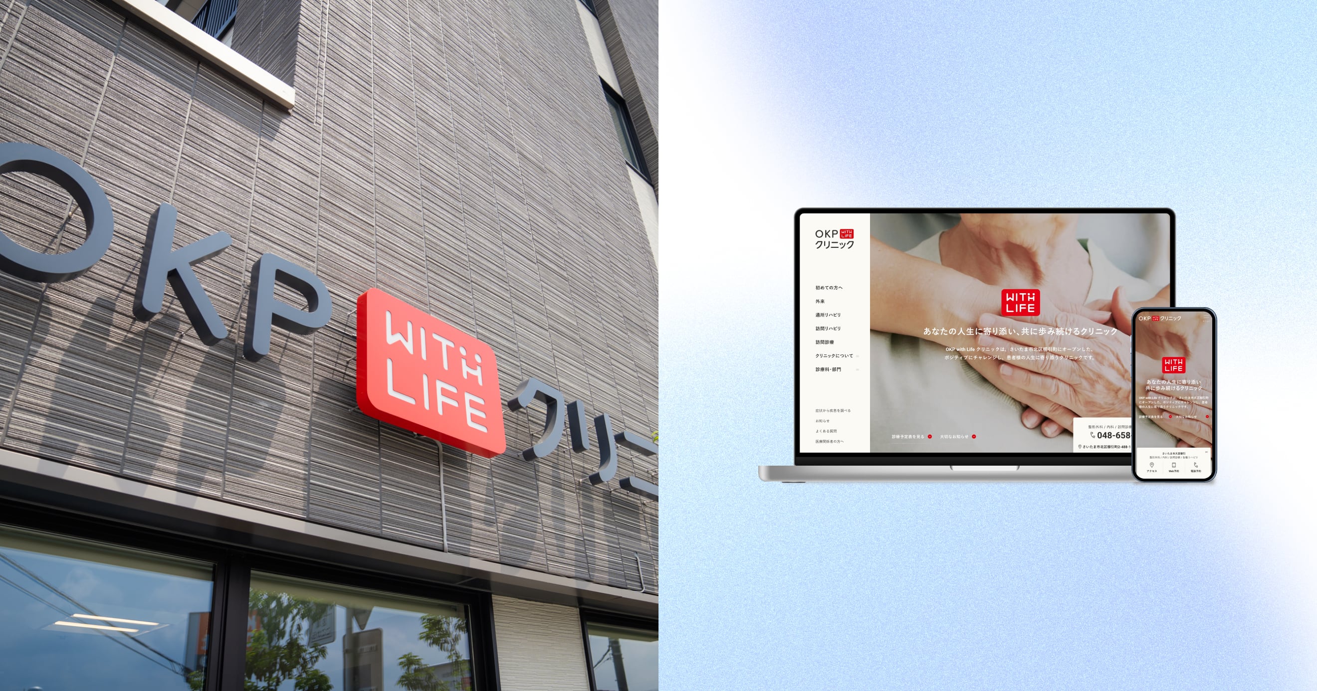 浅見: OKP with Life クリニックは、サイトだけでなくロゴも作らせてもらいました。最初は「OKP with Lifeクリニック」単体で使えるロゴを考えていましたが、「OKP」のOは大宮のO、Kは地域名の櫛引のK、最後のPはPeopleのPと、それぞれの頭文字から取ったものだったんですね。となると、もし今後クリニックを複数展開していく場合、ロゴを毎回新規で作らなくてはならず、手間がかかります。