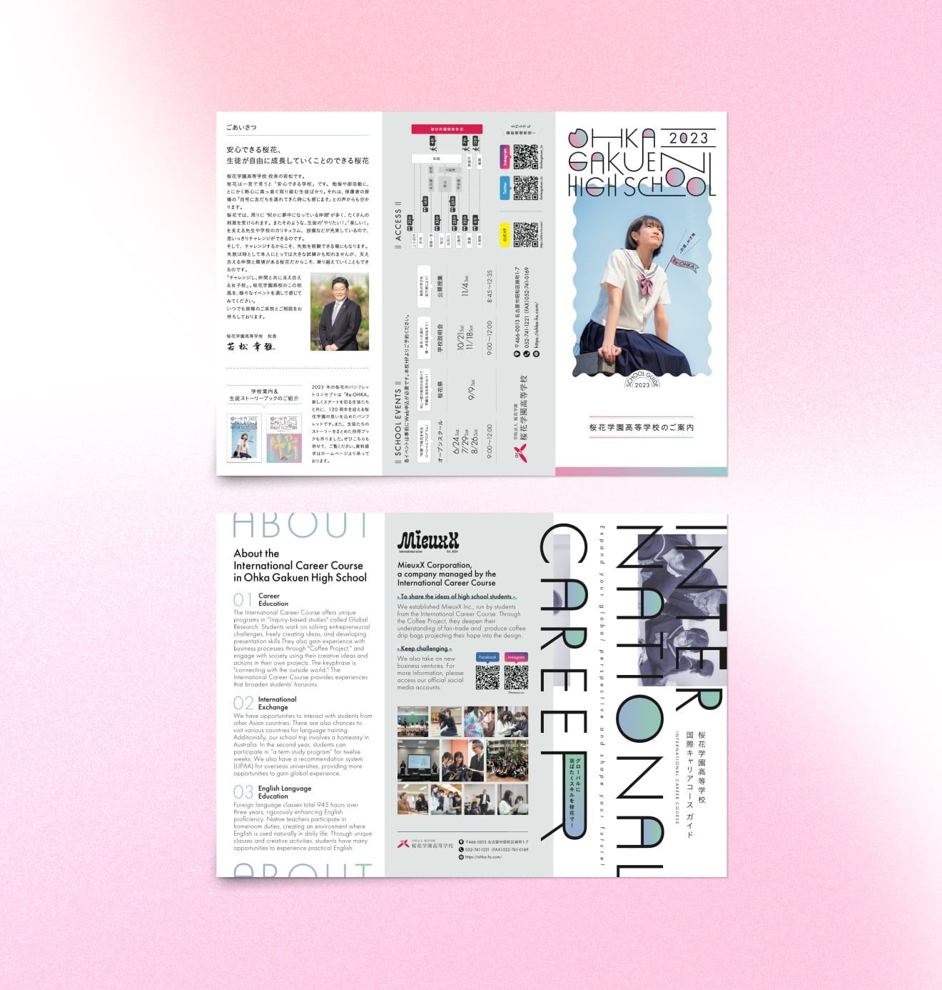 また、一連のブランディングを通して、学校内で入試広報へのモチベーションも上がってきた印象があります。入試担当者は、中学校などで開催される説明会に毎回資料を持参するんですが、今までは何種類もの資料を大量に持って行って説明する必要があったんですね。けれど、今は1枚のチラシに情報が網羅されているので助かると喜んでくれています。また、ブランドデザインが統一されているので、シンプルでわかりやすいとも言ってくださっていました。